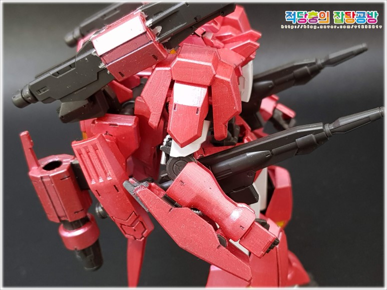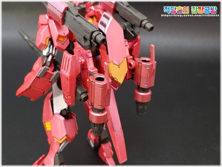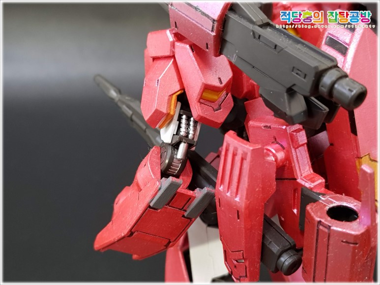 어깨의 레일건의 부분도색은 좀 색다르게 진행해보았습니다.