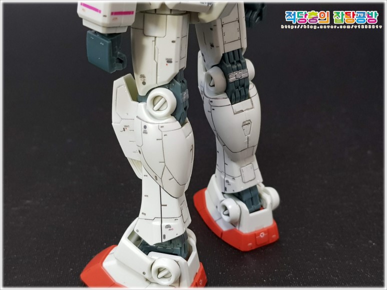 이왕 RG 퍼스트의 데칼을 붙인 김에 RG느낌 조금이라도 더 나도록 팔 오금에 간단히 부분도색을 해줬습니다.