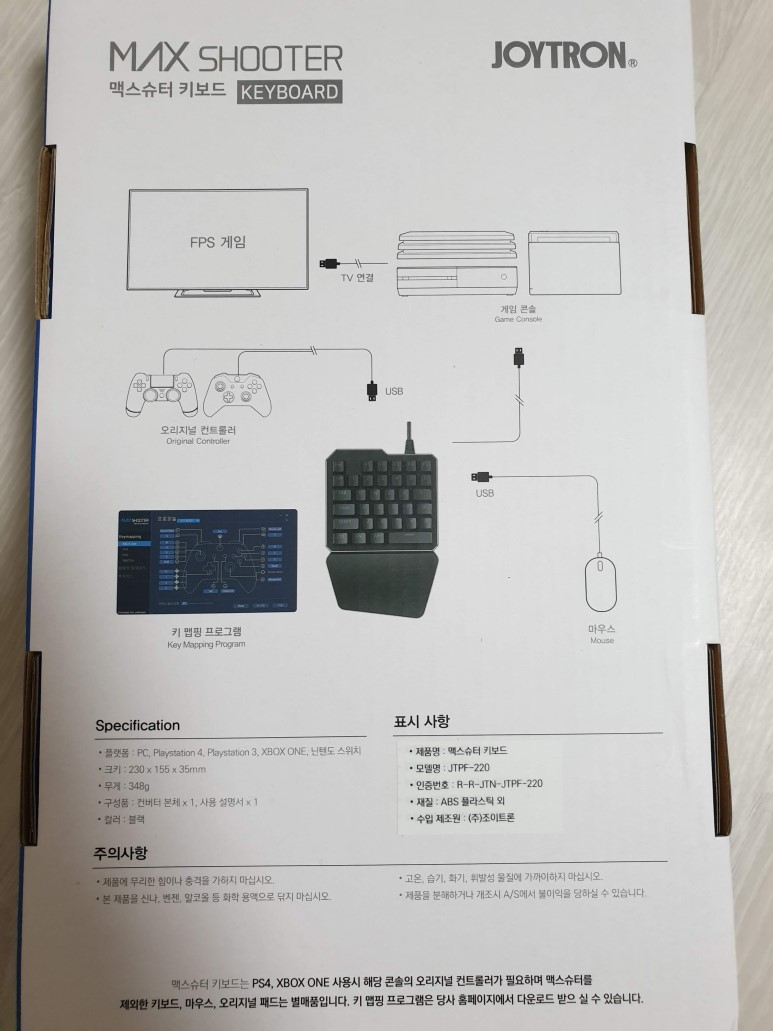 최근 조이트론에서 진행한 맥스슈터 한손 키보드의 이벤트에 당첨이 되었습니다!