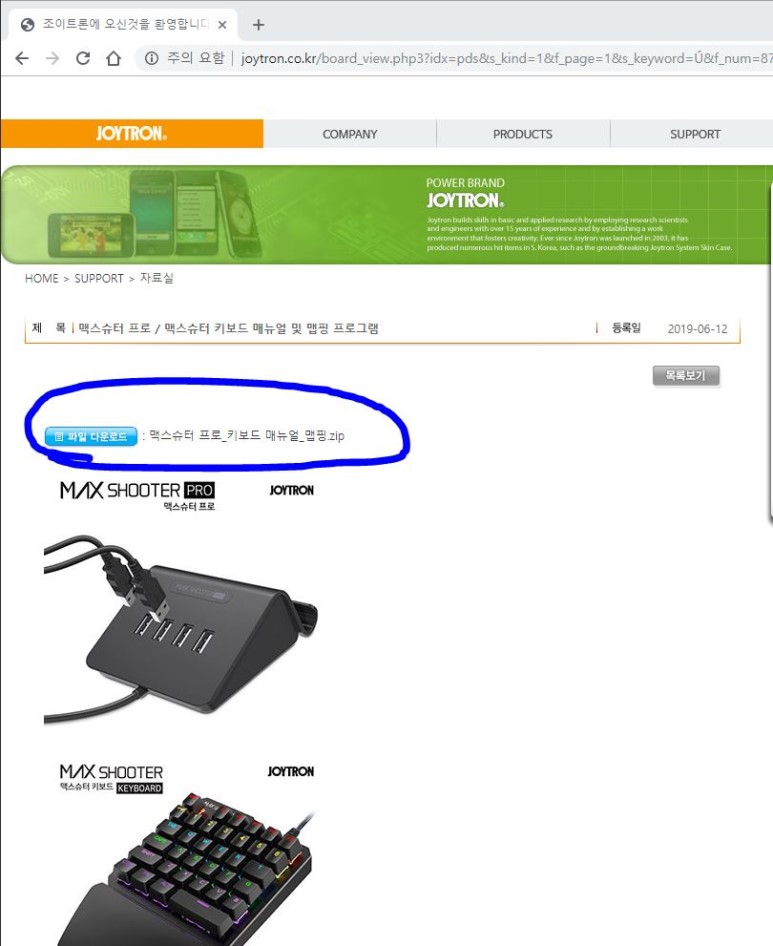 우선 조이트론 홈페이지에서 키보드 맵핑 프로그램을 다운받습니다.