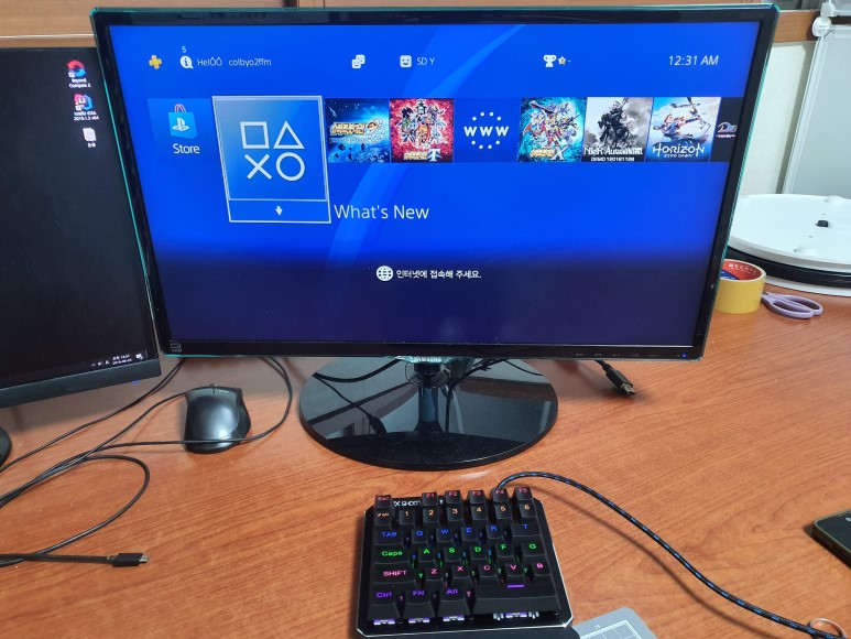 그리고 할게 남았어요. 키보드/마우스를 콘솔에 연결하라고 만들어둔 맥스슈터 키보드이니 시점조작이 필요한 게임도 해보겠습니다.