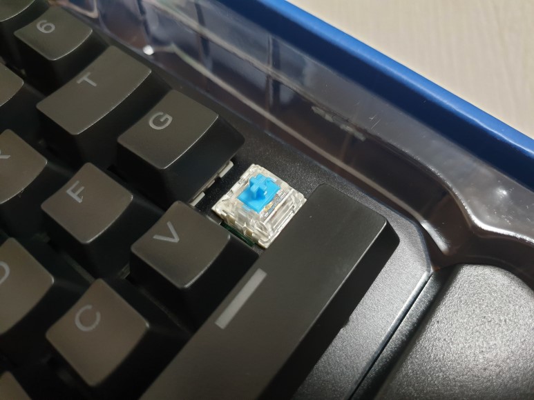 키보드는 기계식으로 작동하며, 청축 센서를 사용합니다.