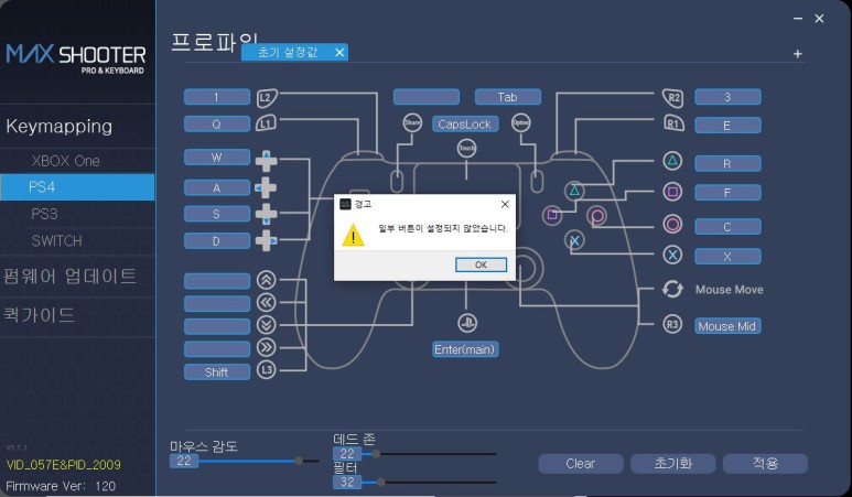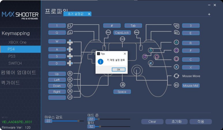 키 맵핑은 XBOX, 플스4, 플스3, 스위치에서만 가능합니다.